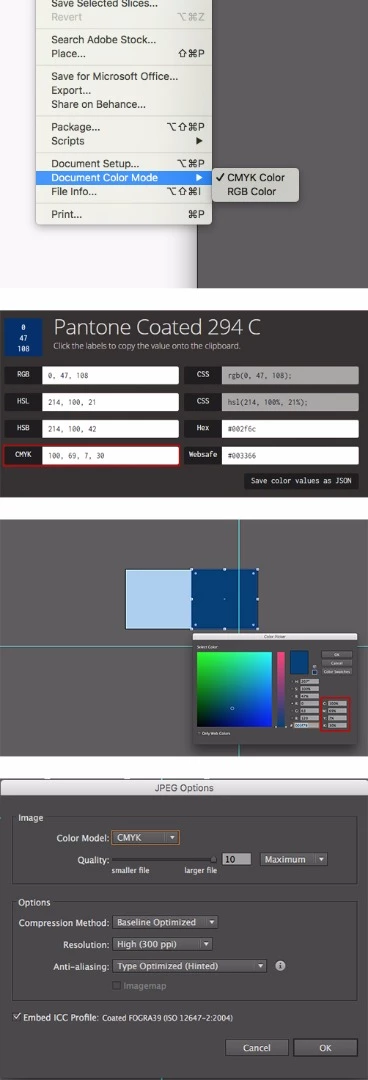I have been given a logo and was asked to save 2 JPEGs one for print and one for the web (Pantone 294c and 543c)