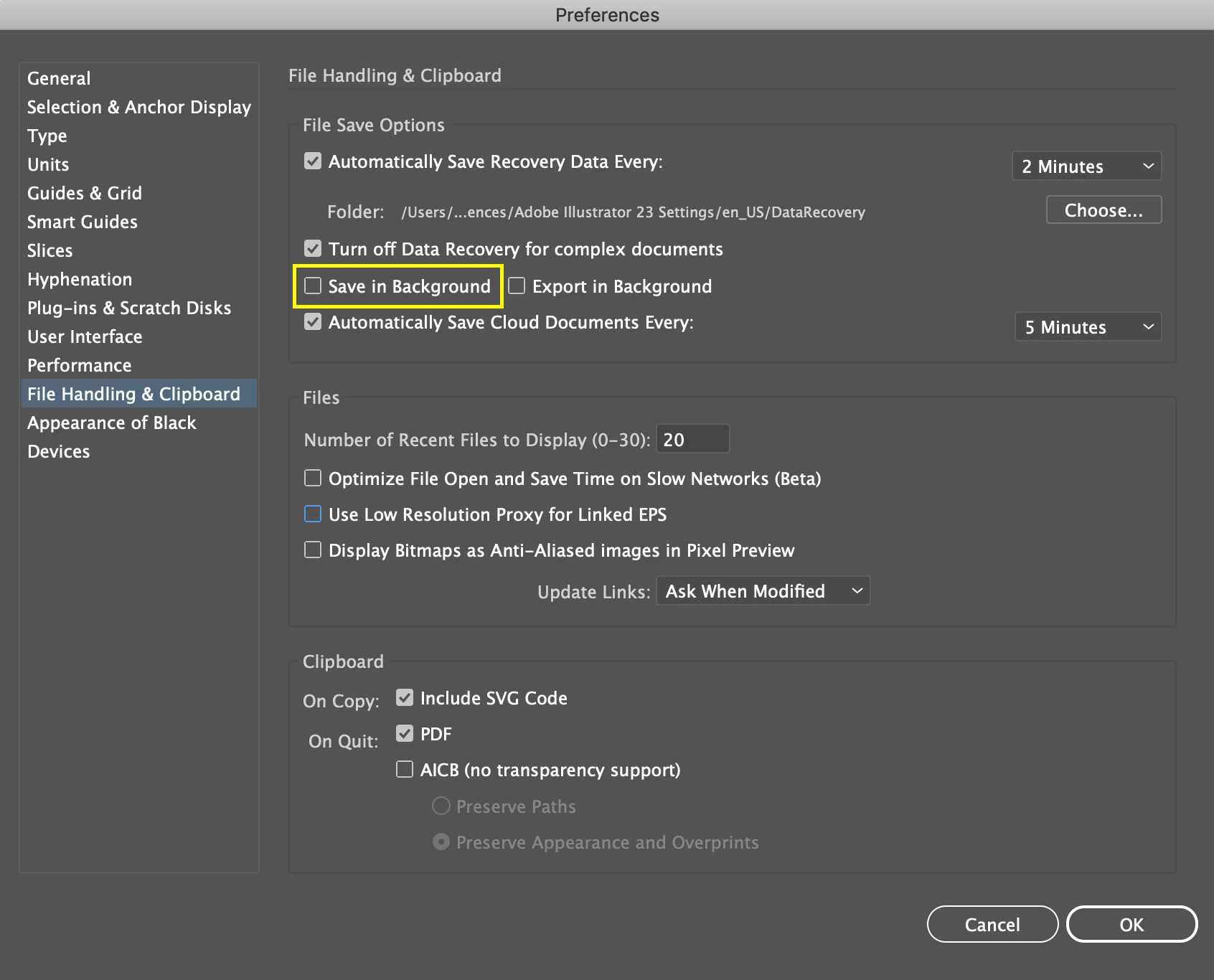 Problems with background saving on Illustrator