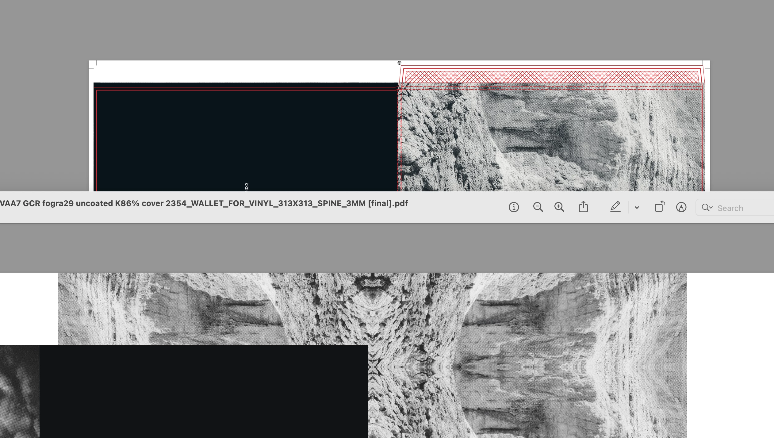 It's subtle, but below is my version via overprint preview using the GCR 26 uncoated profile, vs their preview, which is slightly green when viewed through the euroscale uncoated v2 overprint preview that they are using...