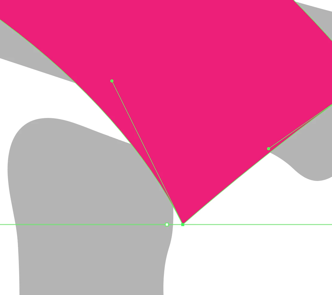2) ClickDrag with the Line Segment Tool from the active Handle into the Anchor Point to create a guide line shown in red;
