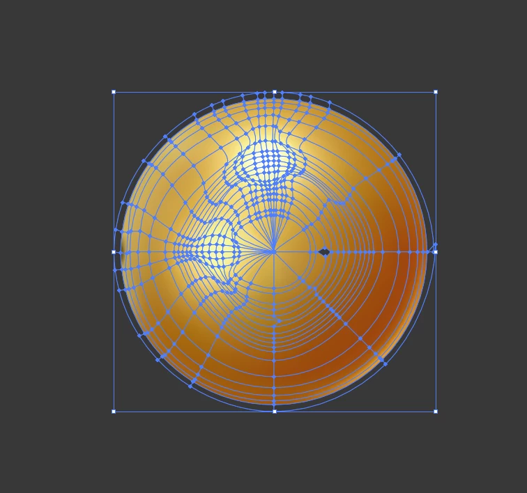 You get a construction like this if you create a circle with a radial gradient fill, then go to Object > Expand > Expand Gradient to: Gradient Mesh