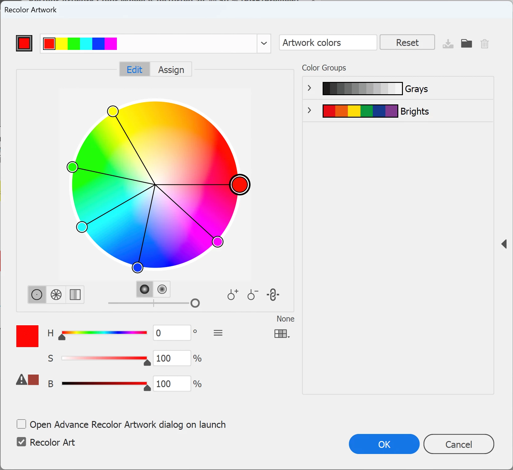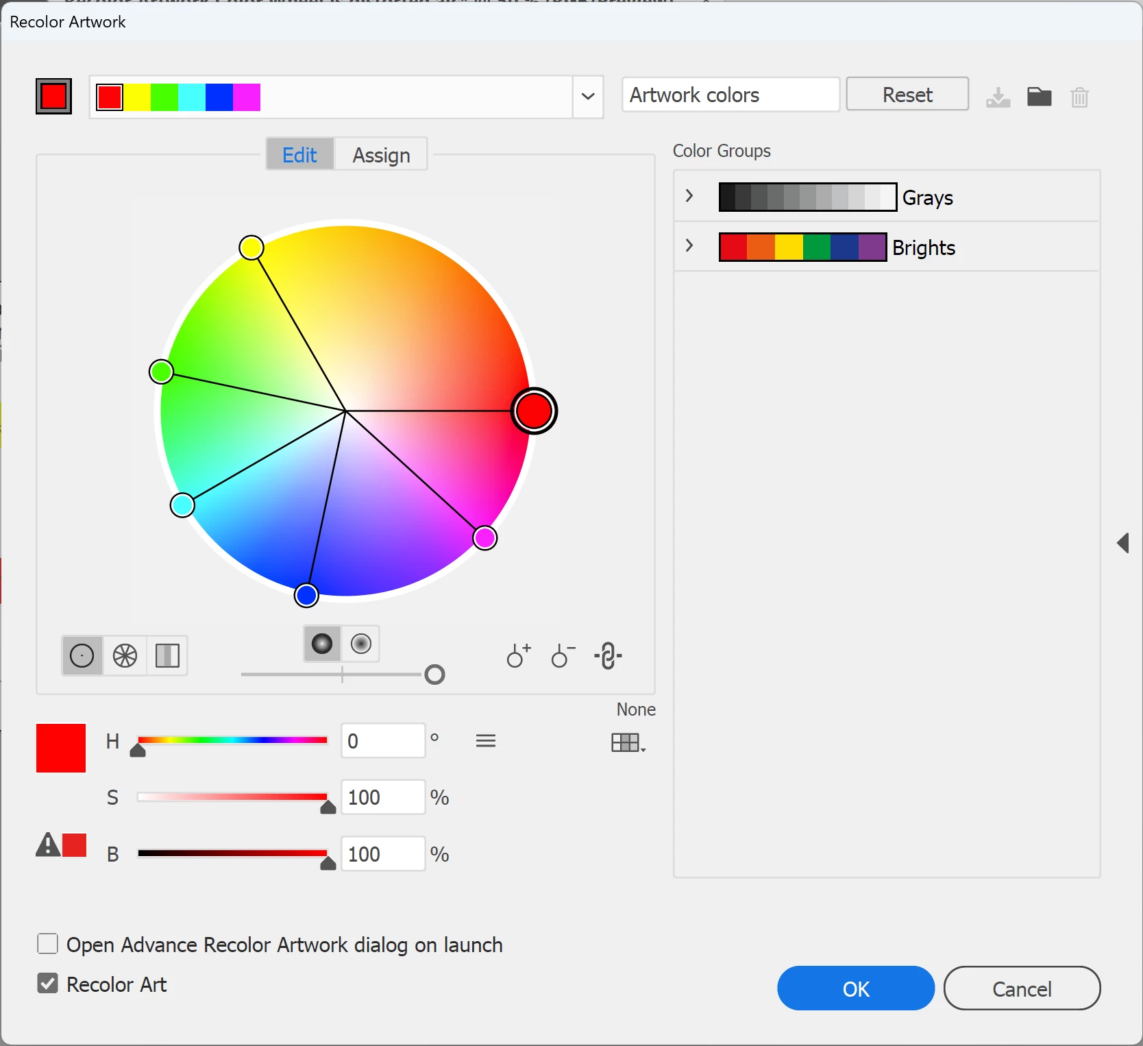 Is there a logic behind this"scheme"? I thought, at one, point, that it was in Lab form but, no. Adobe has purposely "artificially' expanded the space between "Red", at 0 degrees angle, and "Yellow", at 60 degrees angle. This is plain to see on the Recolor Artwork > Edit interface. Sadly, the effect is that this confuses students? And me. Who is trying to wrap my "color head" around the "logic" behind this design.