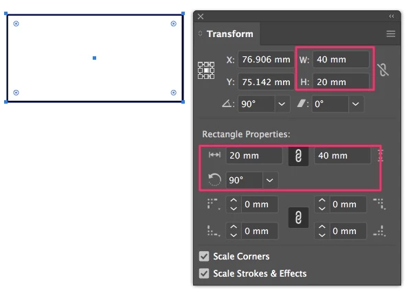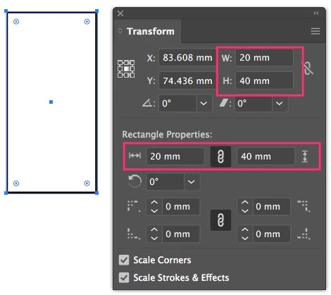If your rectangle is a Shape, you can see the properties in the Transform panel.