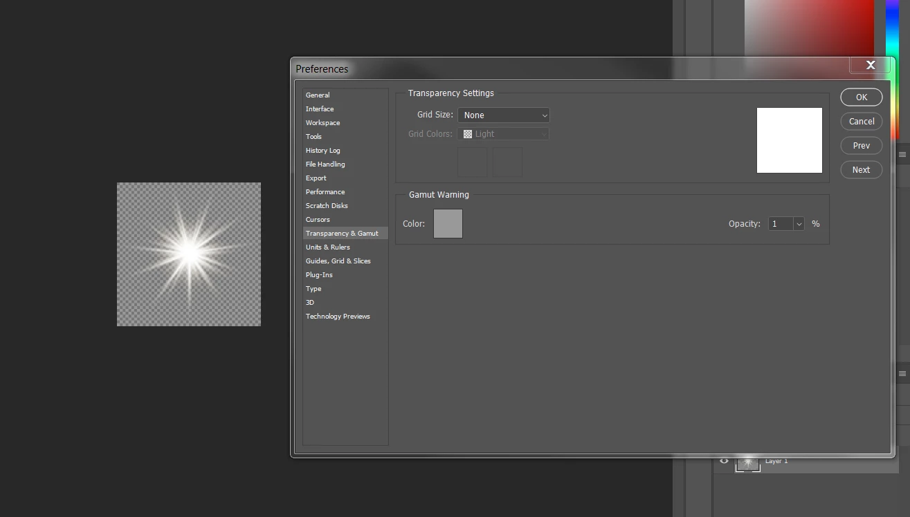 When I import the image into Photoshop, the grey checkerboard pattern is visible.