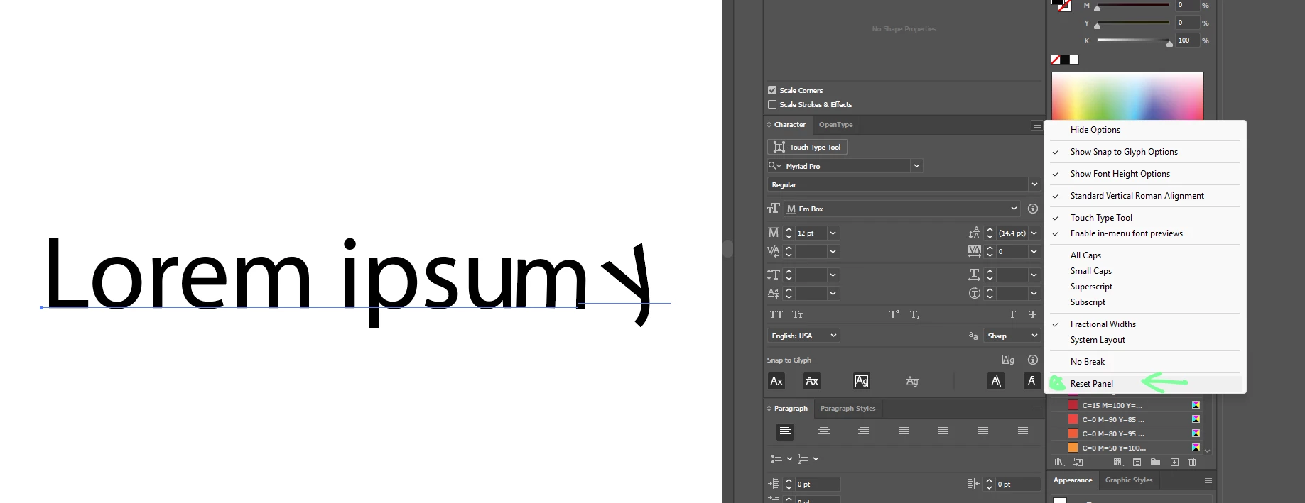 Well, going to Character Panel > Reset Panel. Its actually resets the touch type edits, but i had to do it twice. First time it clears the rotation, second time it clears the letter-spacing and others