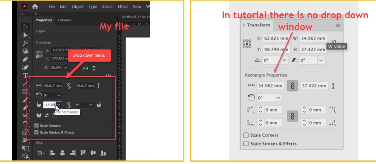 You are still opening the Transform panel from the Properties panel.