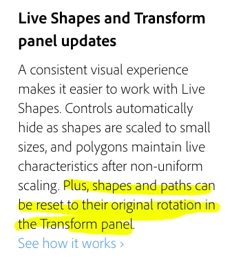I tried several different methods including expand shape, group, and reset bounding box before using the rotate tool. In every instance the bounding box is reset to zero even after the object is rotated. I was going to do the blend method but I just want to figure out why rotate isn't working. Oddly enough I was able to get it to work in Indesign.