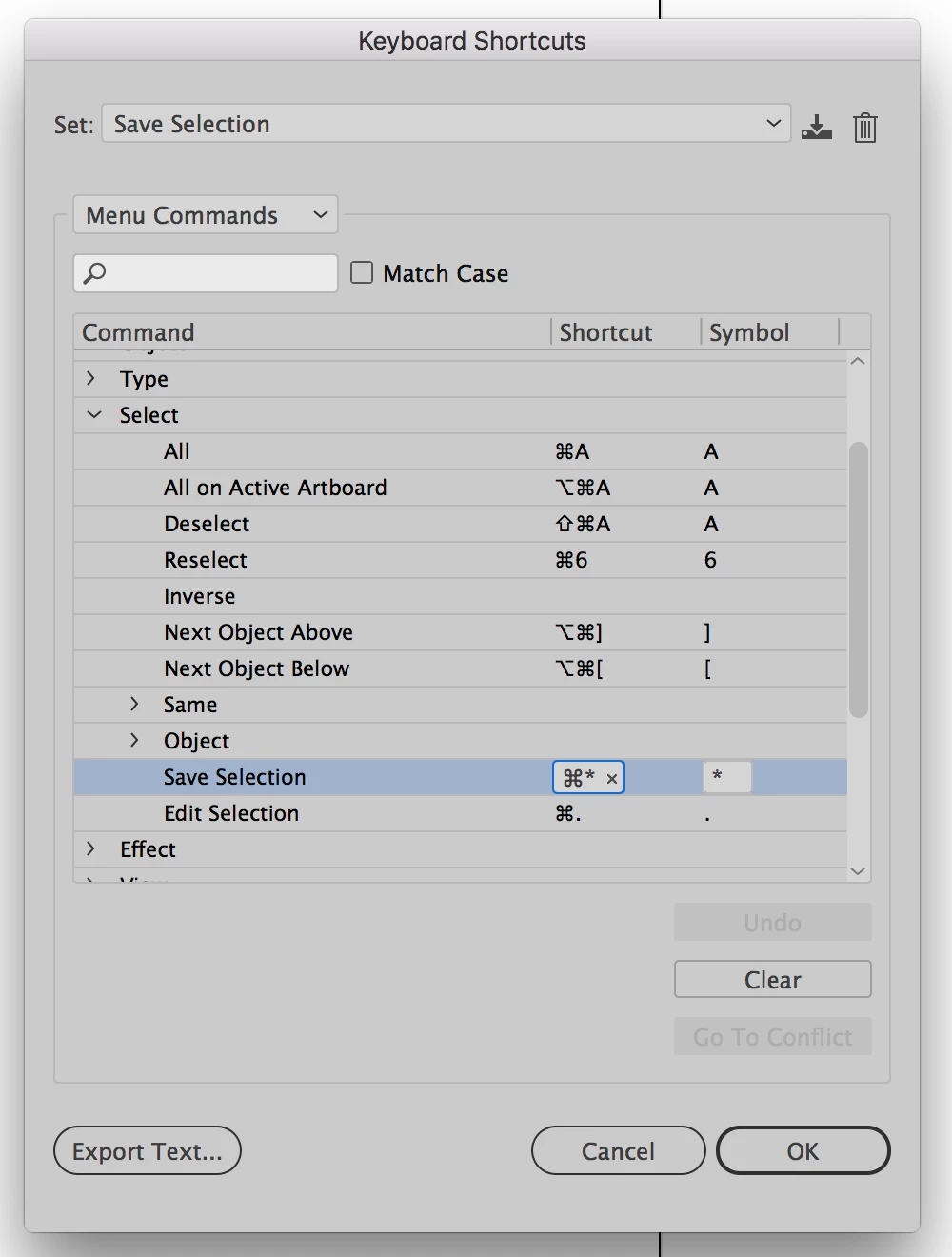 Save selection keyboard shortcut