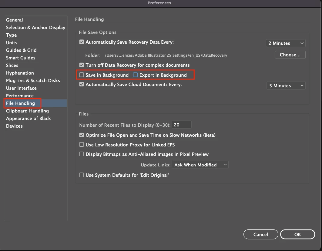 Also, if you are saving to cloud storage/ server/ Onedrive/ Dropbox, I would recommend working from and saving the file locally on your Macbook desktop first and then moving it there.