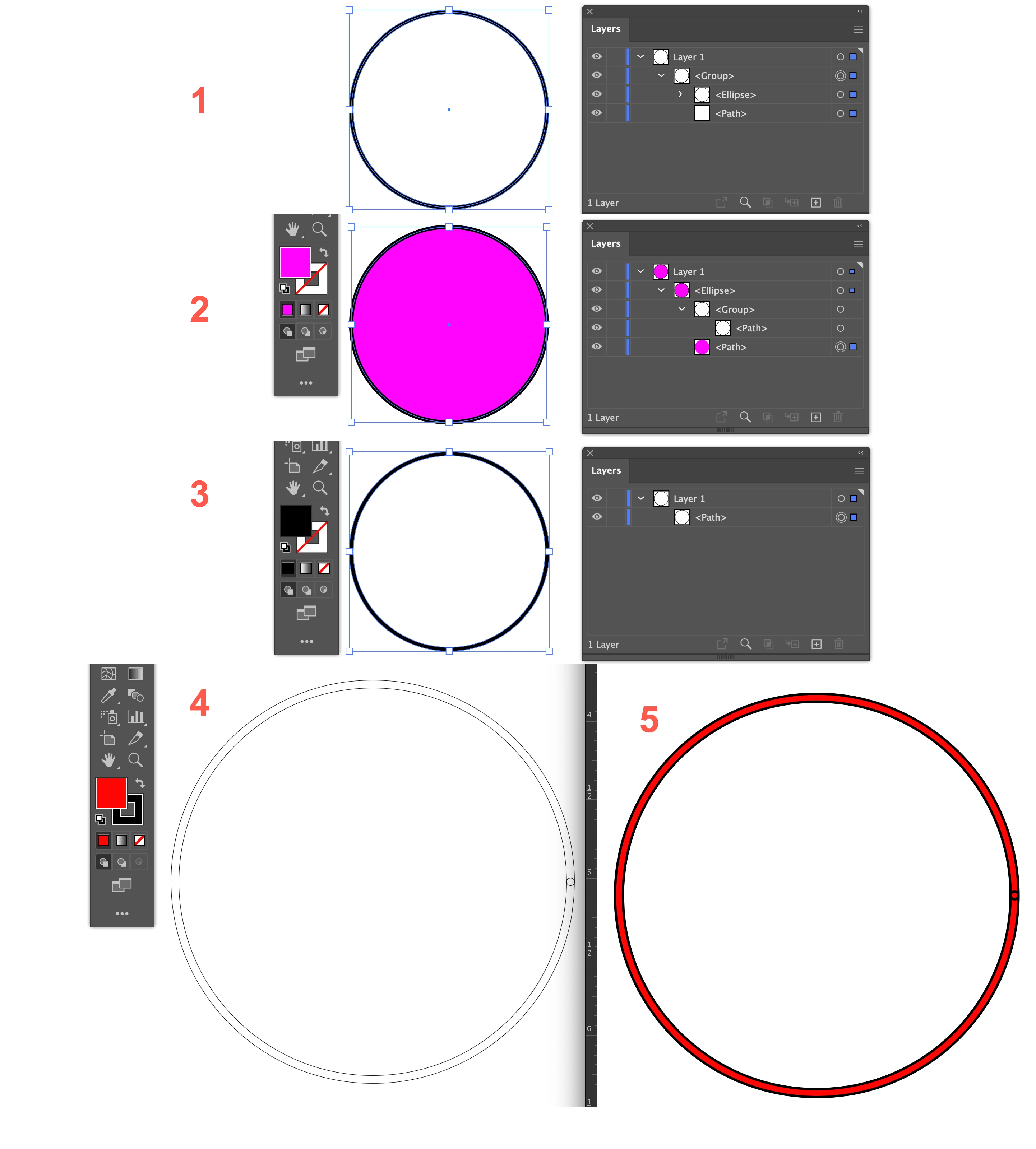 The South circle was Ungrouped again, then separated to show the two components. Note that the one that is not filled cannot be filled.