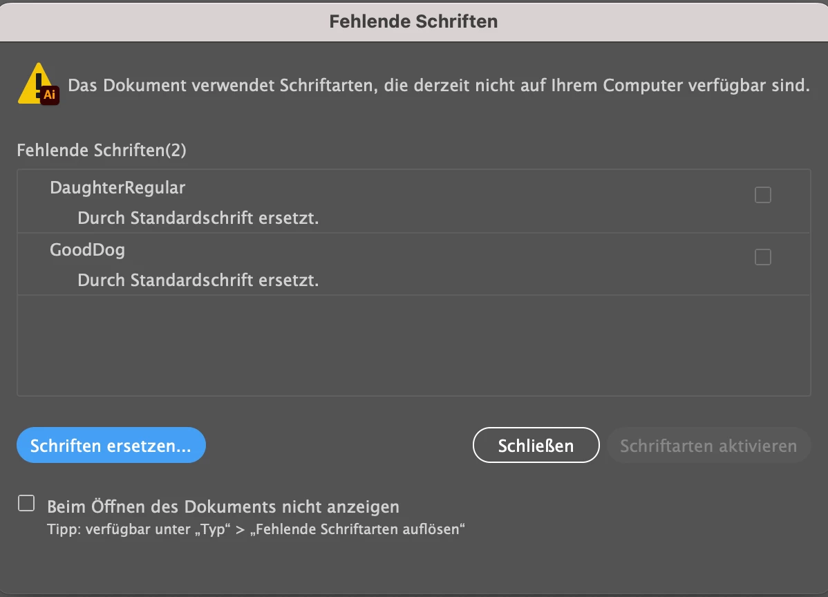 ich habe div. Schriften auf einem Macbook installiert und diese sind vom System auch erkannt, aber Illu erkennt diese nicht und beim Öffnen der Datei werden die Schriften im pop-up nicht angezeigt.