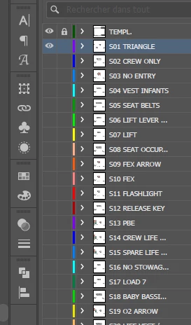 Je voulais savoir s'il existait un script ou Action qui enregistrerait sous PDF le calque S01 puis le S02 puis le S03 etc tout en gardant visible le calque commun (sur la photo c'est le "TEMPL. tout en bas)?