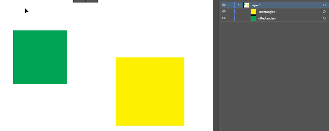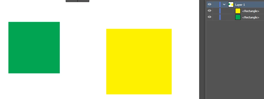 First concept is that in an Illustrator document, the art objects are inside array-like collections and those are directly tied to their stacking order. If we wanted to grab a hold of the green one, it would be the 2nd item in this collection of Document.pathItems at index 1 because in javascript all counting is started at index 0. The yellow item would be in index 0 therefore.