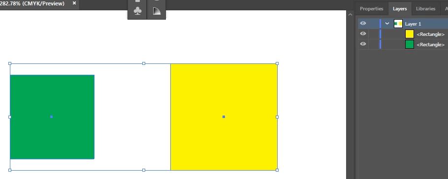 And now we can see the green square is perfectly vertically aligned to the middle of the yellow square.