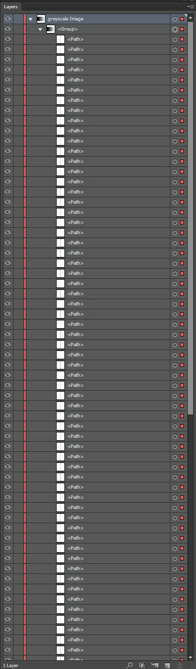 1. Greyscale photographic file is vectorized in Illustrator into 100 levels (1-100%)