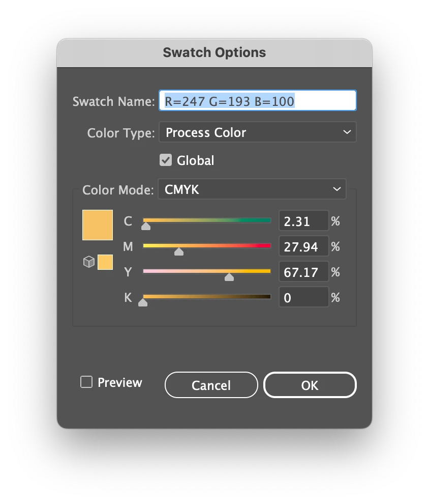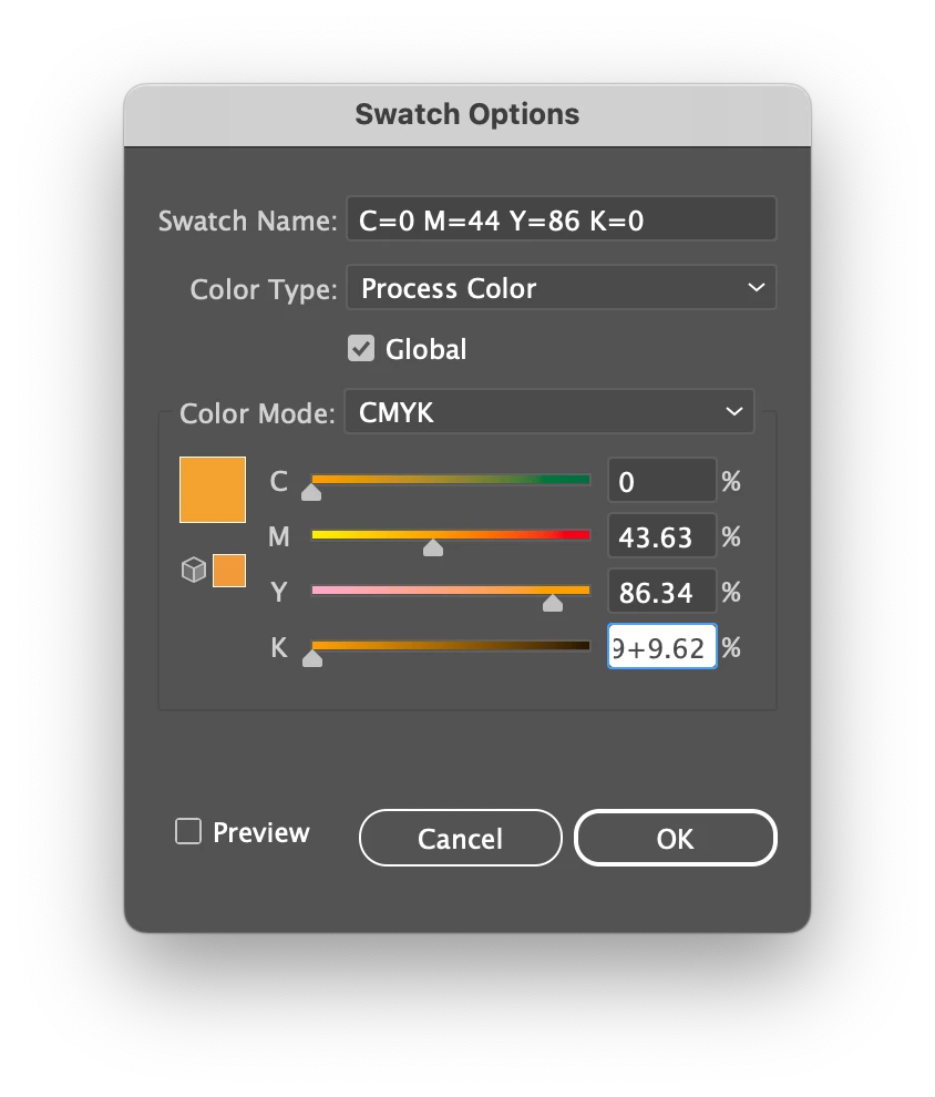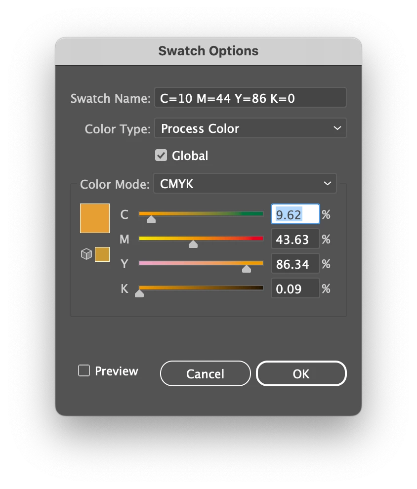 So that in the end each swatch can see the colors with the values in CMYK but it does not show the decimals. // see image 05 //
