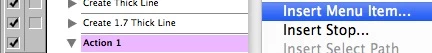PLUS A BUG with recording the "Find and Replace". In case you do not know, when you save "Actions" in Illustrator you can; save any of the actions that require a dialog box; 1) to either have the dialog box come up so you can enter whatever you need into it or 2) you can have the dialog box NOT come up & the action will just do what it had in it when you recorded it. This feature is turned on or off by clicking the box next to the check mark on or off (see pic).