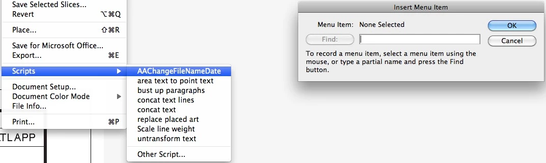 If inside the "ChangeFileNameDate" custom script it could simply open & then close the "Find and Replace" box (that would solve the crashing with "Find and Replace" in "actions") then the custom script could cause the "Action" to play instead of the "Action" causing the custom script to play. Then all we would have to do is drag down to the custom script from "File" & run that. No crashing, No babysitting.