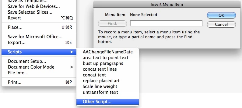Newbee here, We are working in Illustrator CS5. I have put together some scripts & Actions to automate several parts of our work.