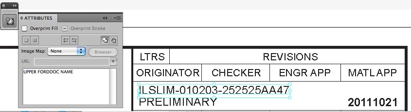 1) We have an .ai file (our default format) that we can open up & inside some text will automatically fill in when we run a script. (see custom script at bottom) Some text boxes will fill in the date based on the present date on our computer, some text boxes will fill in a name based on the name of the electronic .ai file.