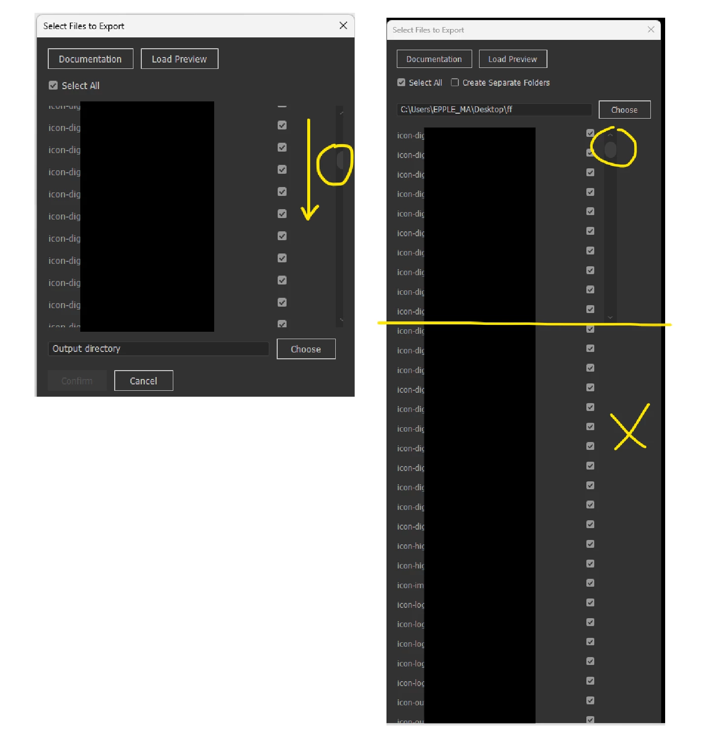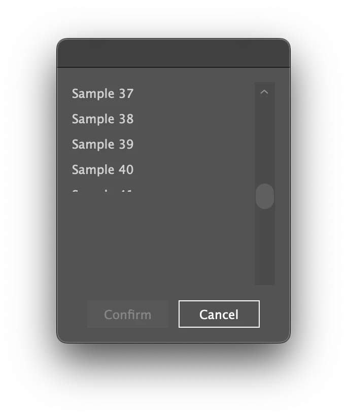 Hello, I have run into an issue with scrollbars in Illustrator JSX Sxripting. The left image shows a previous version of my code where everything worked perfectly. The list of files was displayed correctly, Scrollable and cropped to fit the intended area.