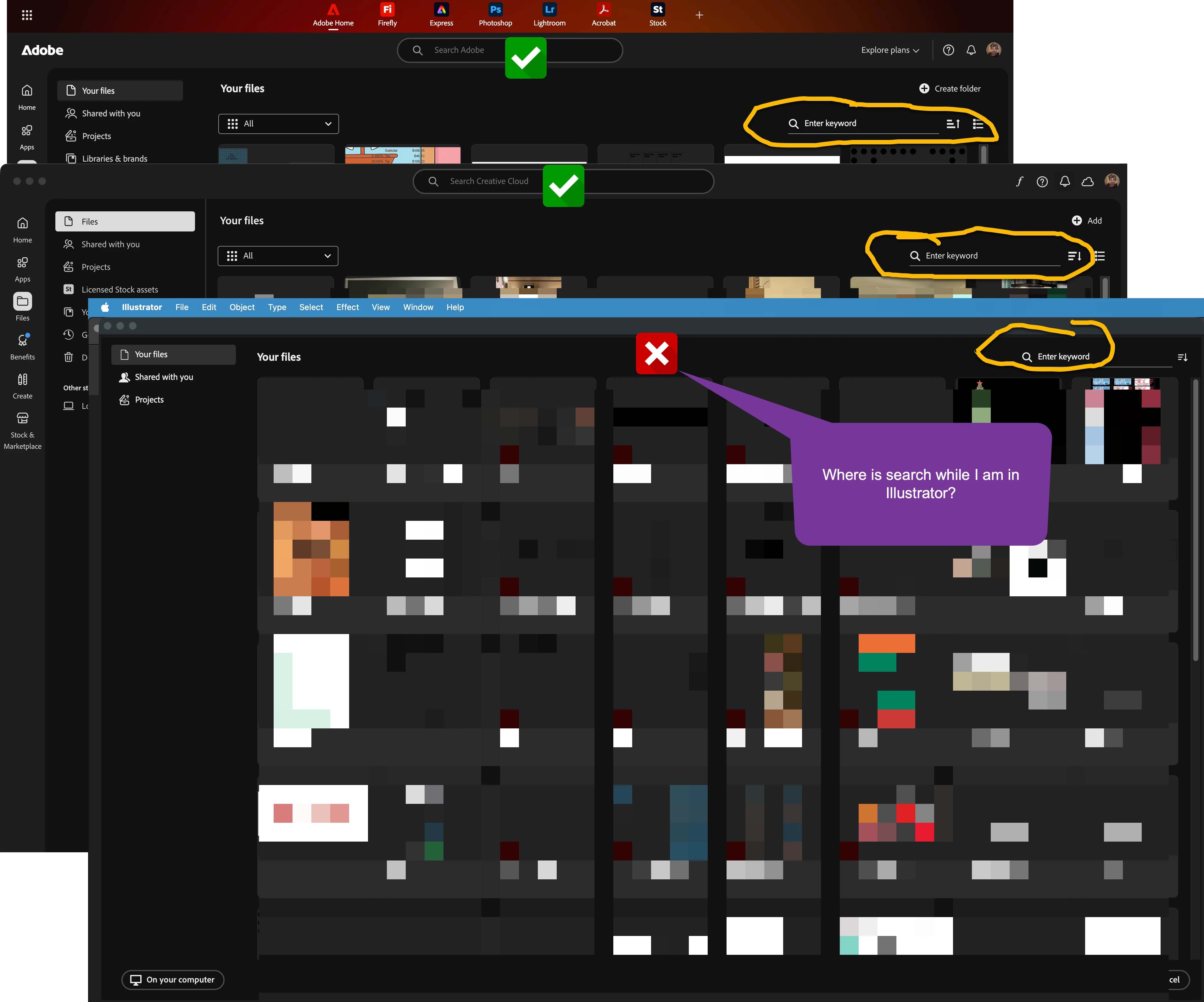 Hi.. I’ve saved a bunch of AI docs in my Online files… however, I seem to be competely overlooking the ability to search files by name… where do I locate such a search capability?