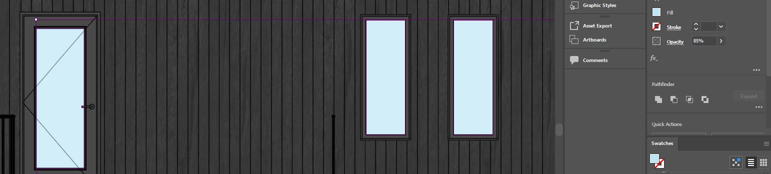 I have multiple paths in a layer, and I am selecting all elements on that layer. It shows that they all have the same properties: same fill colr, and same opacity.