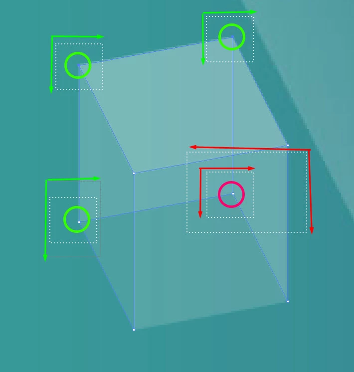 Each corner has 3 overlapping anchors from 3 different shapes.