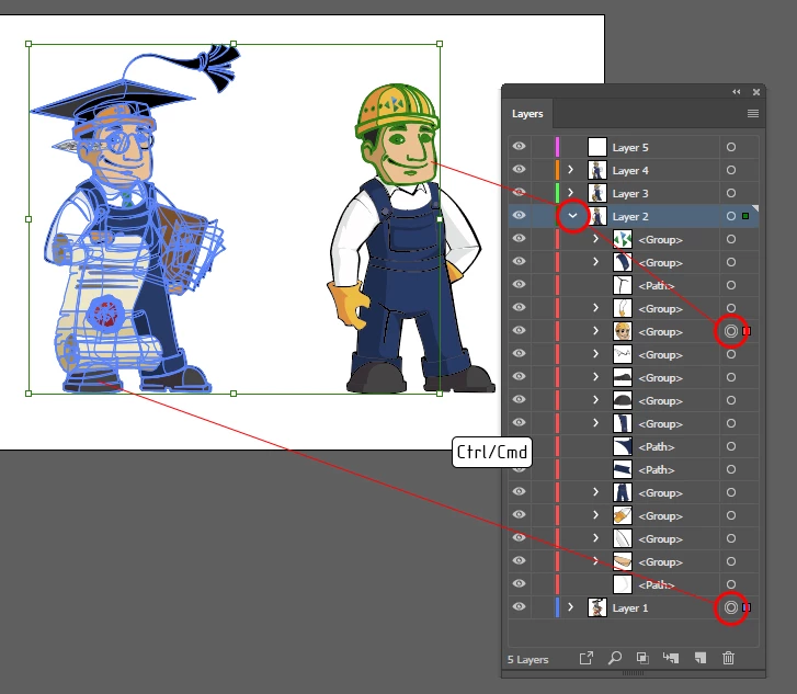 I see near the layer a circle, and for to select a layer, I must to click on this.