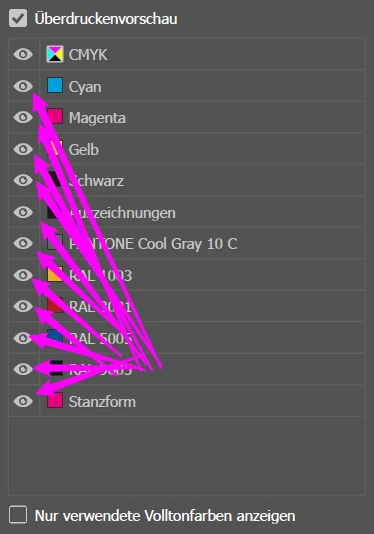With Photoshop you only need to click on a color. Hold down the mouse button and then pull it up or down to switch more colors on or off. So if you want to switch 10 colors off and on again, for example, you have to click the mouse a total of 20 times.
