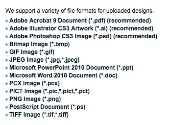 Here are the file types recognized by Vistaprint: