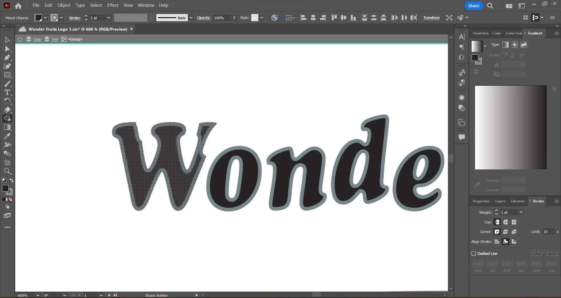 I would like to remove the outlining of my text to make it thinner as I saw online, but for some reasons, my shape builder doesn't detect the outline. I select my text and then press alt with the shape builder. I have tried to remove masks but there is none.