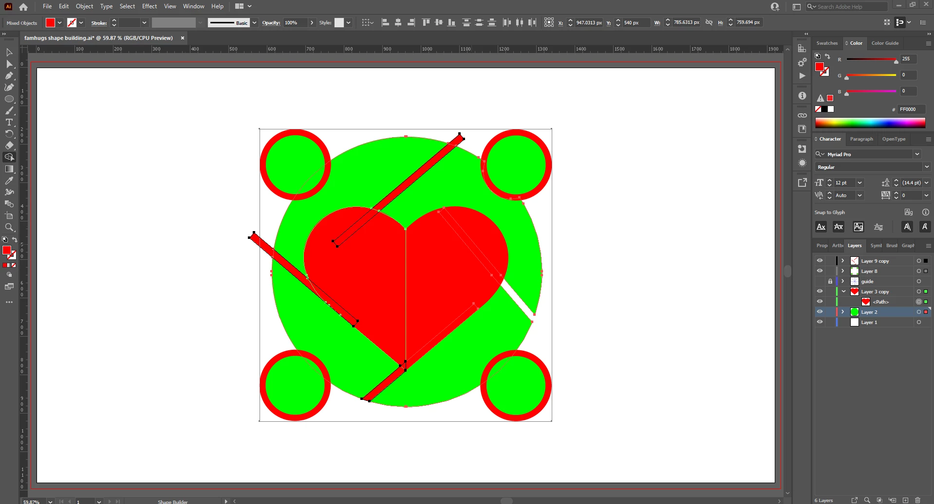 Hello, I am trying to create a logo with the shape builder tool. As you can see from my screenshot, I want to keep the green parts and remove the red parts.