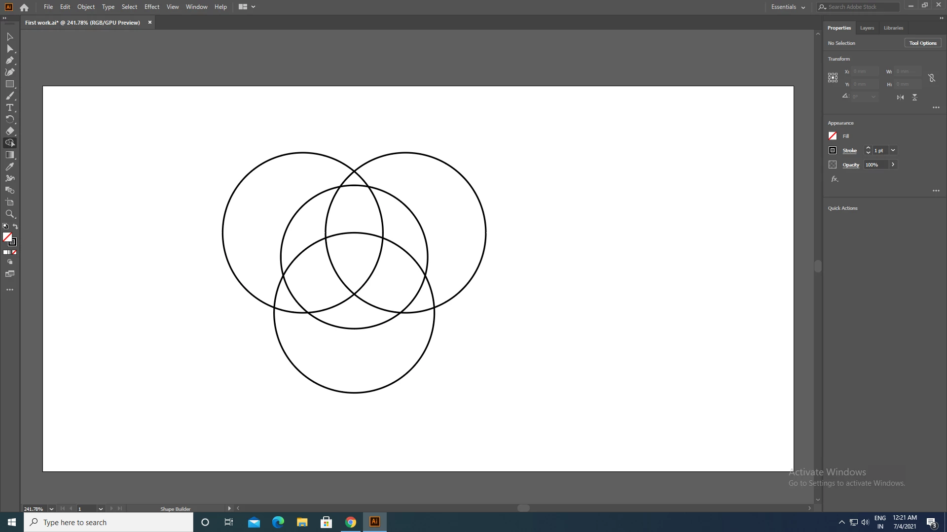 Shape-builder tool not working in my first step of usage in Adobe Illustrator
