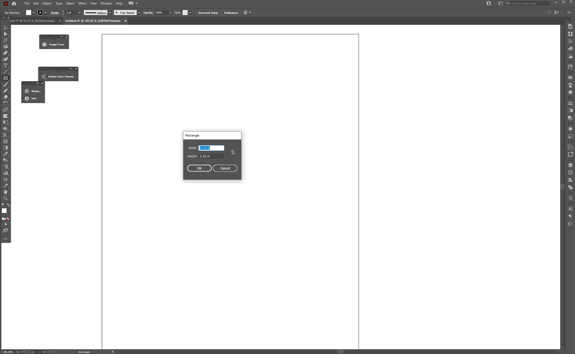 1. Using the shape tool I entered precise dimension for a rectangle.