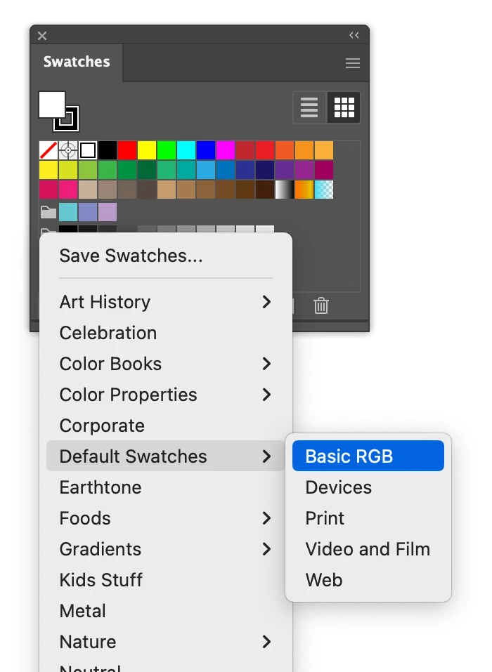 But you can always load swatches from the Swatches panel: