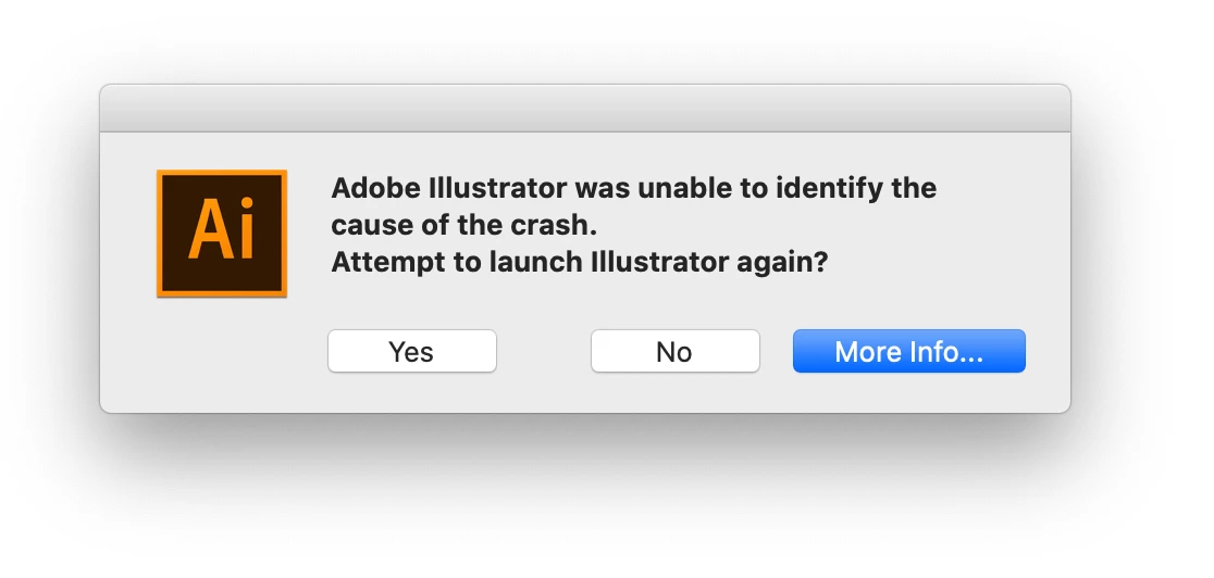 I click the application and it comes up with a message saying 'Adobe Illustrator was unable to identify the cause fo the crash. Attemp to lanch Illustrator again Yes or No or More Info.' If i click yes it comes up wiht the same message again and if No it just closes. More info goes to a webpage about Safe Mode, (https://helpx.adobe.com/illustrator/using/safe-mode-illustrator-diagnostic-startup-tests.html) which again doesn't work. I cannot load it in safe mode either.