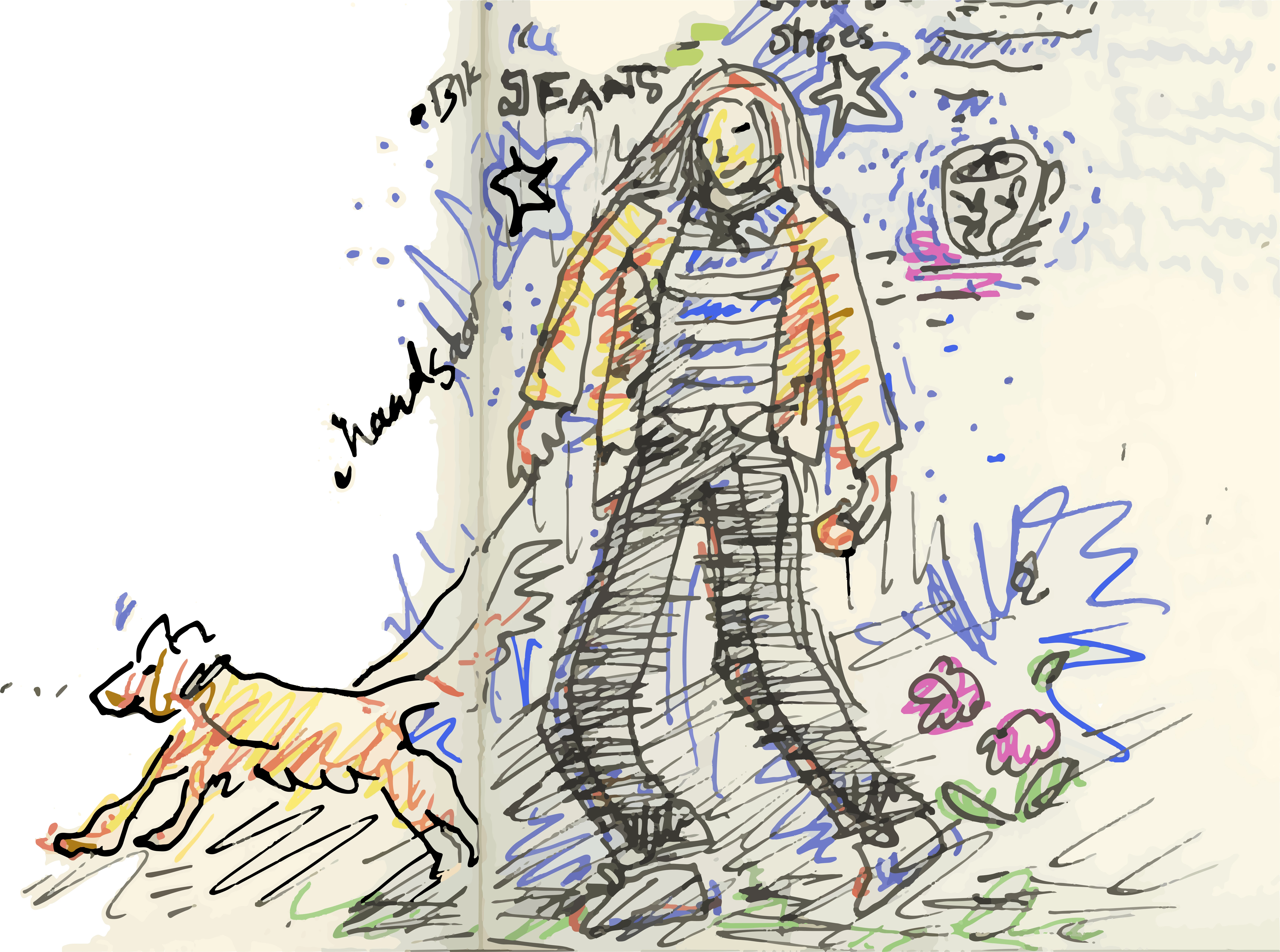 The scribble hereby sent passes over two notebook pages, I tested this one because I liked the drawing. For your info, I am nor content nor unhappy with the result and will continue testing Sketch2Vector. I am curious to try all the new fantastic Adobe tools and particularly this one. I have a ton of these scribbles at home one more complex than the other. Unfortunately they will end up nowhere, who will sit for hours and "clean up all the whites in Photoshop or sit for 50 h and vectorise manually every stroke.. and unfortunatelly you can only get the energy and beauty of these kind of sketches on paper. I am a very rapid illustrator, painter etc everything I do well is fast and I would like the programs I work in to be as fast, smooth and good as the mood I´m in when I create things or similarly play chess. I would like my tools to pick up this speed and they sure are starting to do so lately, yet with AI it is not always what I wanted nor can I quite get the look nor pinpoint the vision that was what I imagined. When the vision in us that we have and that we get inside is lost and we can´t translate it nor get it out as we want easely, AI will take over and tell us what our vision is and this has now already started to happen. Firefly very often tells me, I´m not doing it any different for you, this is what I want to make. Stubborn but kind it does create nice things and with speed indeed.