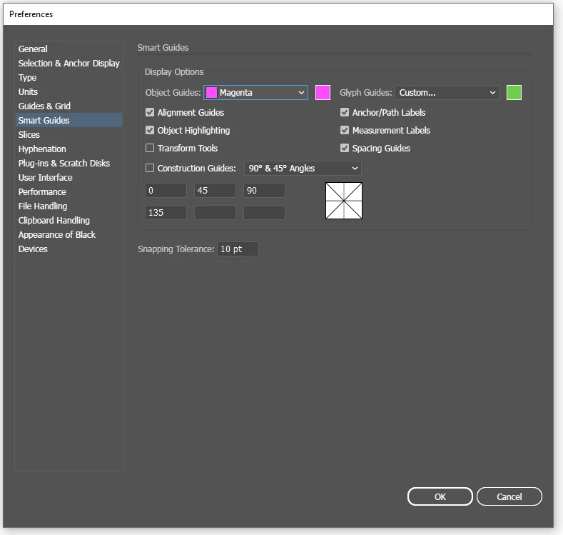 SMART GUIDES NOT SHOWING ON PEN TOOL