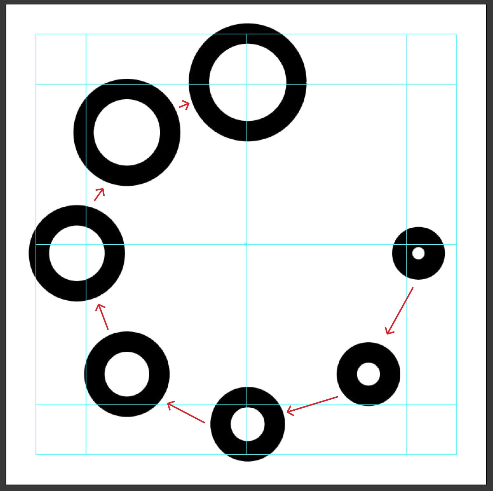 How can I create a loading icon with evenly spaced circles, similar to the attached image? I've tried using the Blend Tool and creating a brush, but the circles are not perfectly spaced when turned into a brush. Using only the Blend Tool seems to work best, but the spacing between the circles is inconsistent. How can I ensure that each circle maintains equal distance from one another?