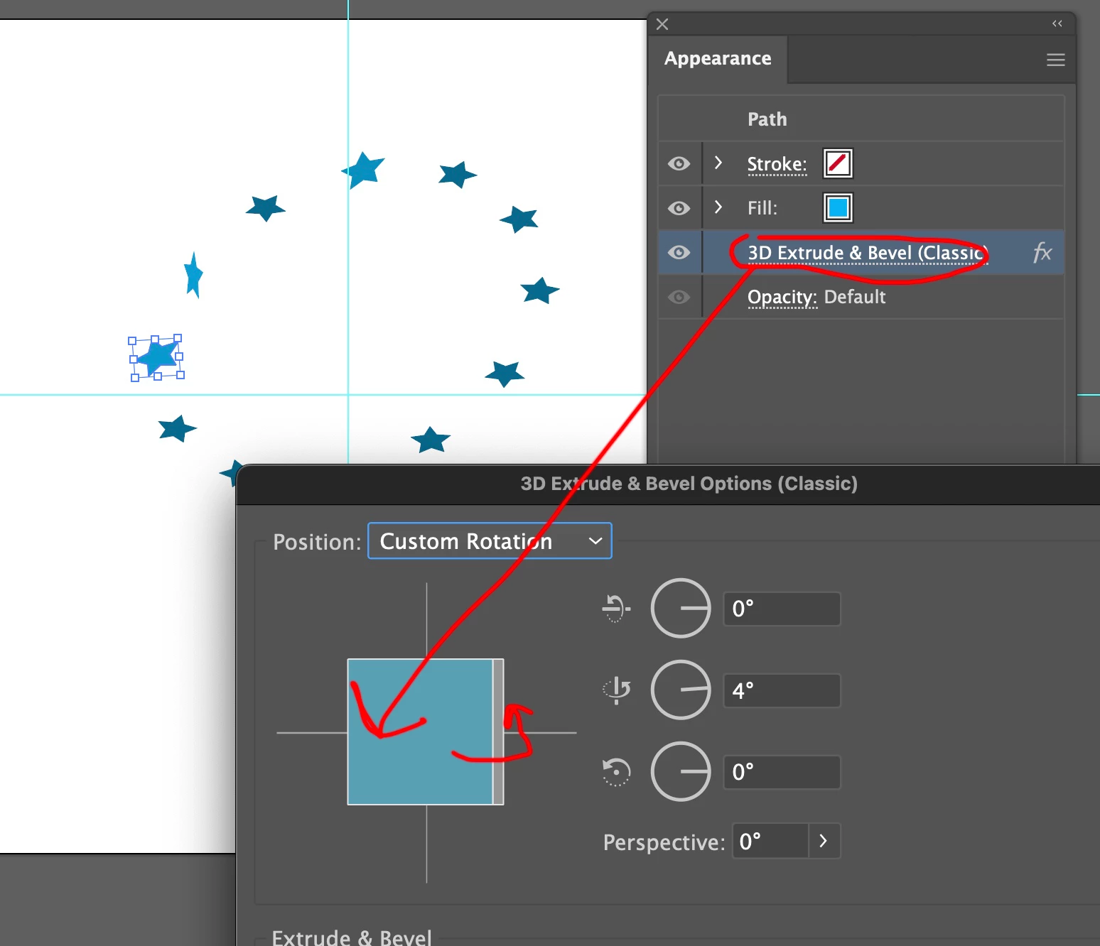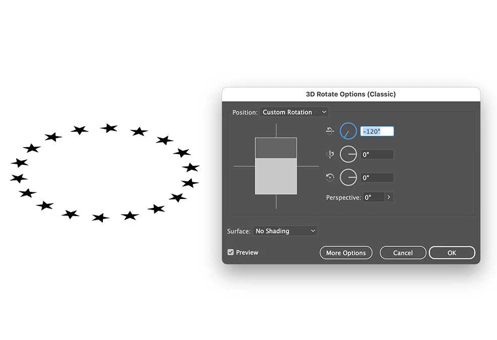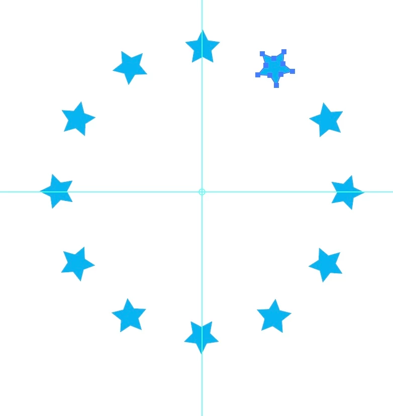 can anyone help me with a step by step explanation how to create a star circle with the stars changing angle like in this picture?