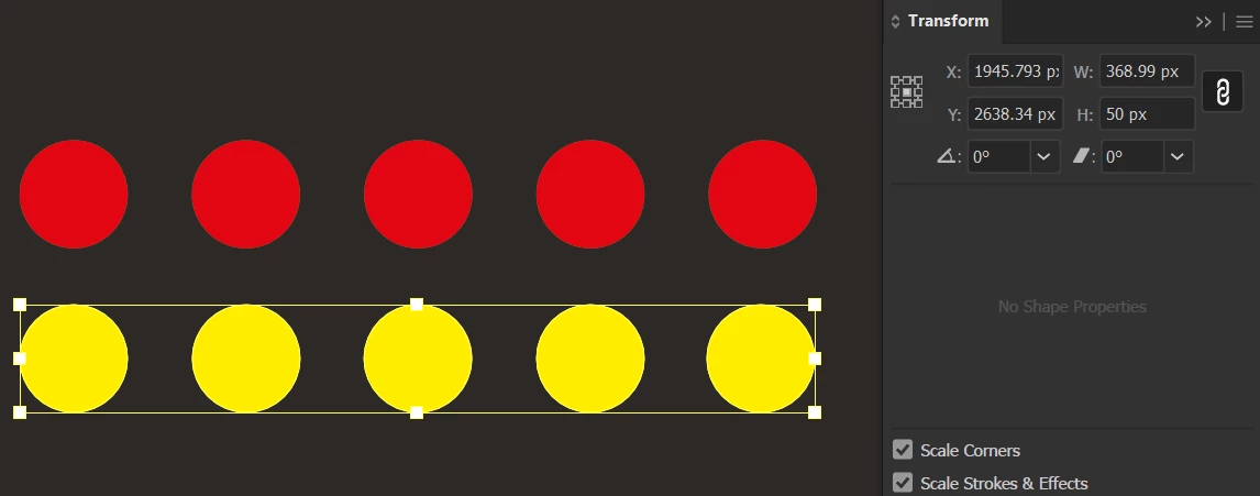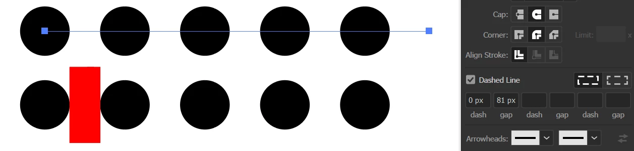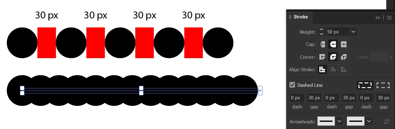 I have separated circles manually with 30 px rectangles but if I use 30 px as the gap this is the result I get: