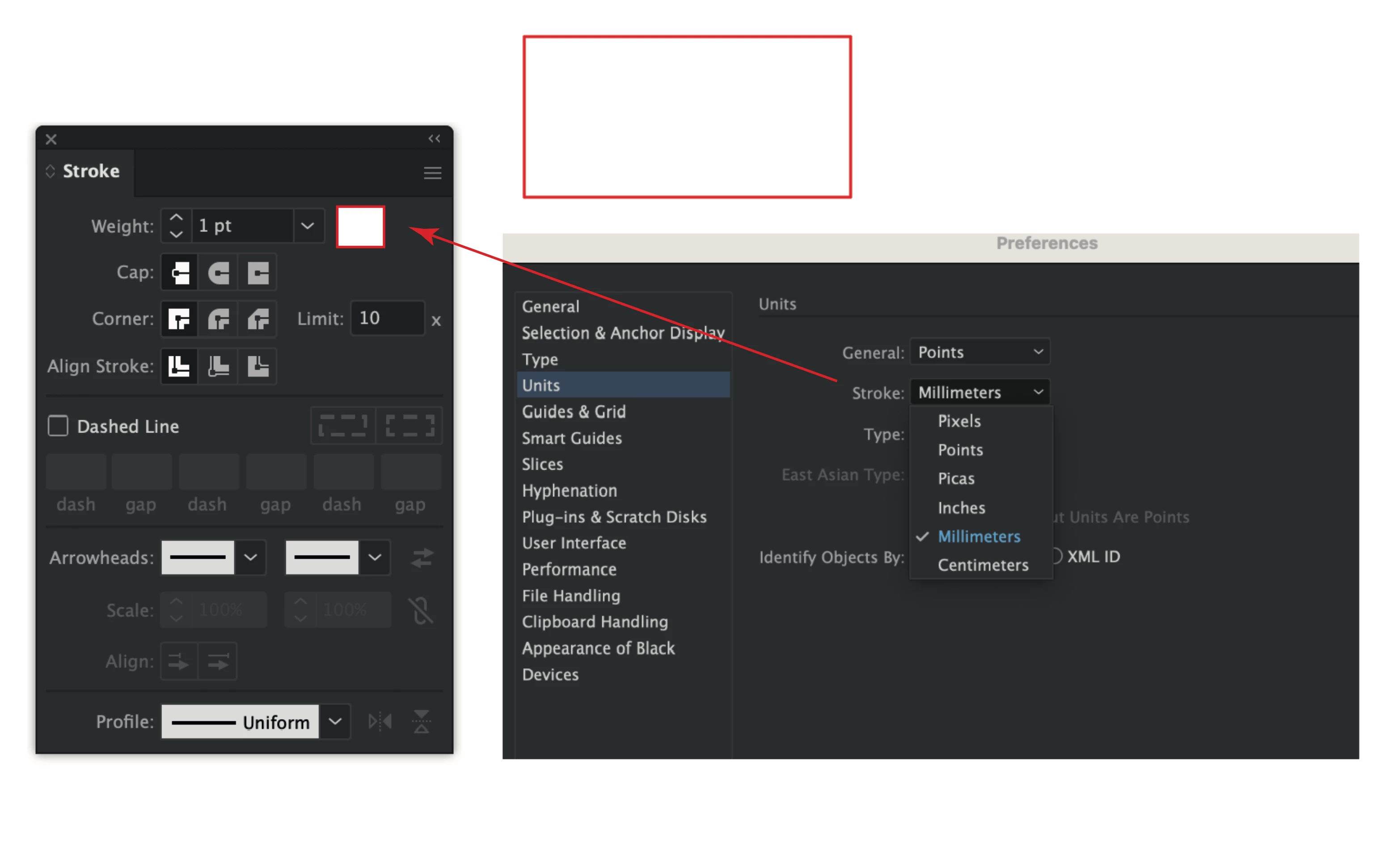 Currently, the stroke unit can be adjusted via the Preferences > Units > Stroke settings. It would be extremely helpful if this setting could also be made accessible directly from the Stroke panel as a shortcut. Being able to quickly switch between measurement units is particularly important for us during production workflows. Therefore, we kindly ask you to consider adding a shortcut to the Stroke panel for easier access to unit settings. Thank you for your attention and support. Best regards, Taylan Tekin