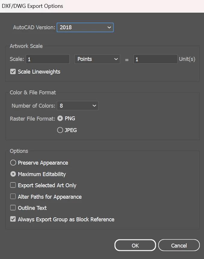 The last bullet point is what I am struggling with. Does anyone have any suggestions on settings for this? I really don't want to have to buy an ACAD license to do this.