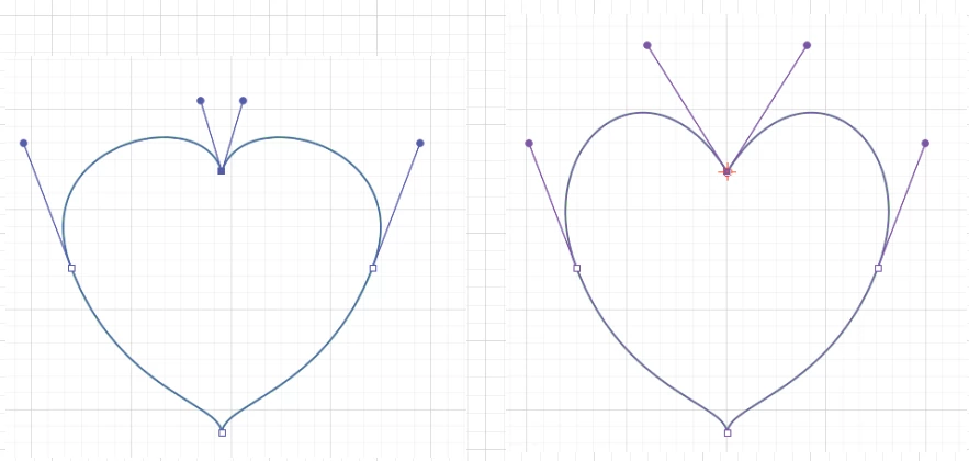 Think of my heart made of just two points with curvature: I want to modify the curvature by moving handles, the anchor should stay where they are.