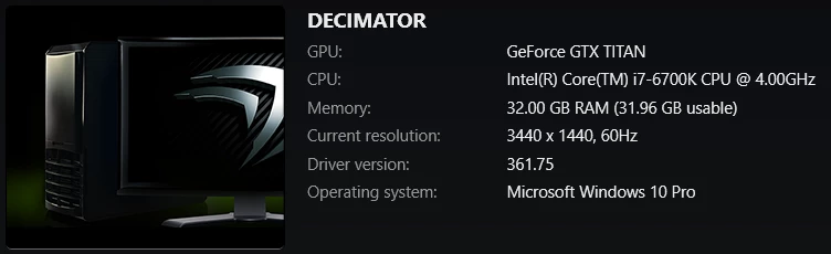 Latest version of illustrator CC still crashing when opening any file with any moderate complexity.  Specs from NVIDIA GeForce Experience (below).  Please let me know if any other information would be helpful.  Thanks!