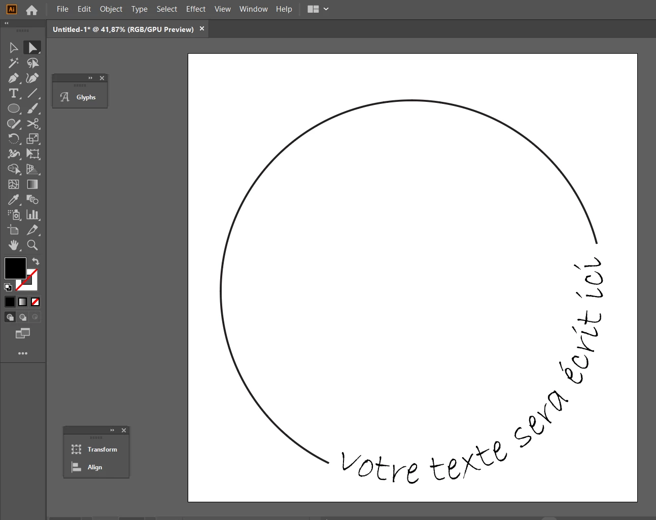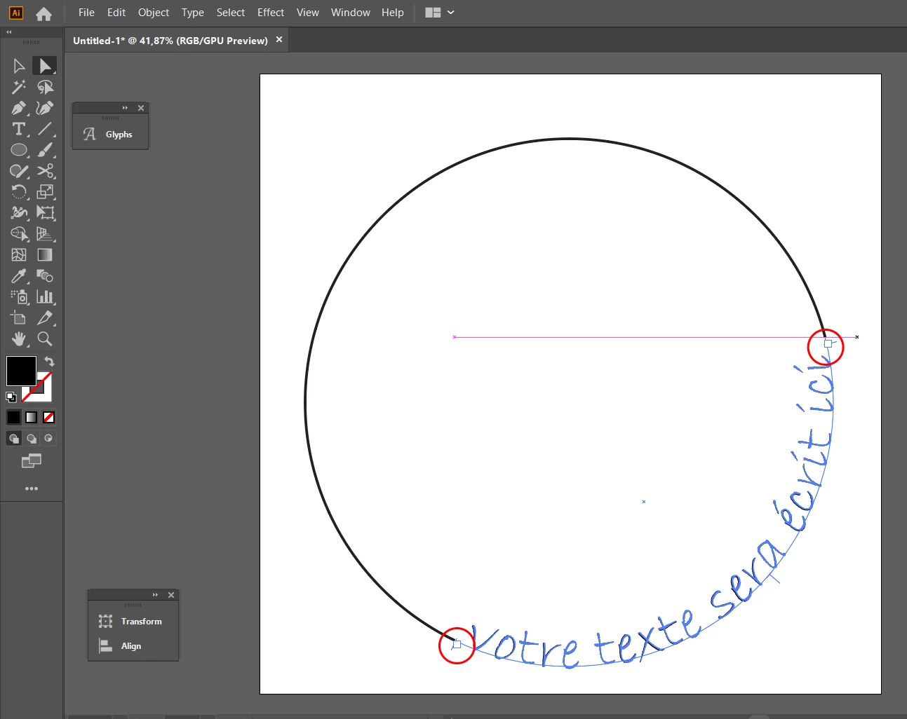 3. écrivez le texte sur le contour et alignez-le au centre. Le contour de la ligne où sera le texte disparaîtra