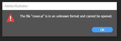 The file "cover.ai" is in an unknown format and cannot be opened.