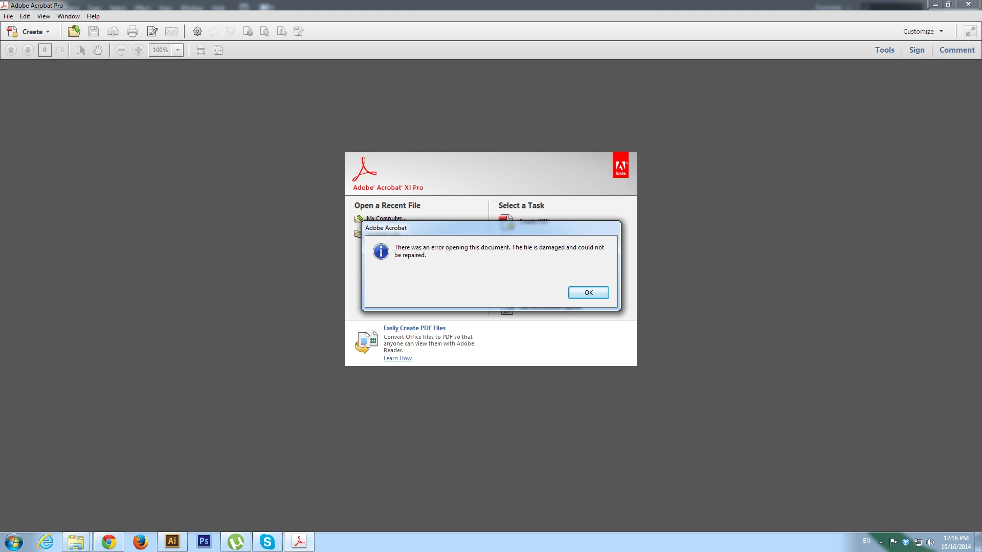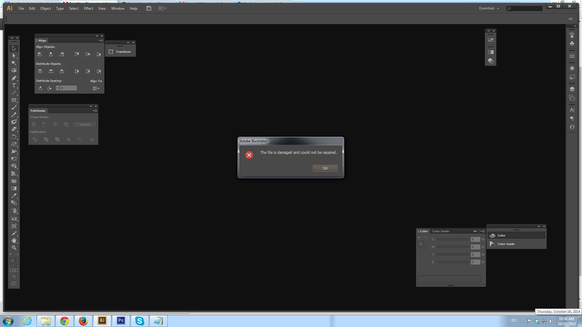 the file is damaged and could not be repaired in illustrator