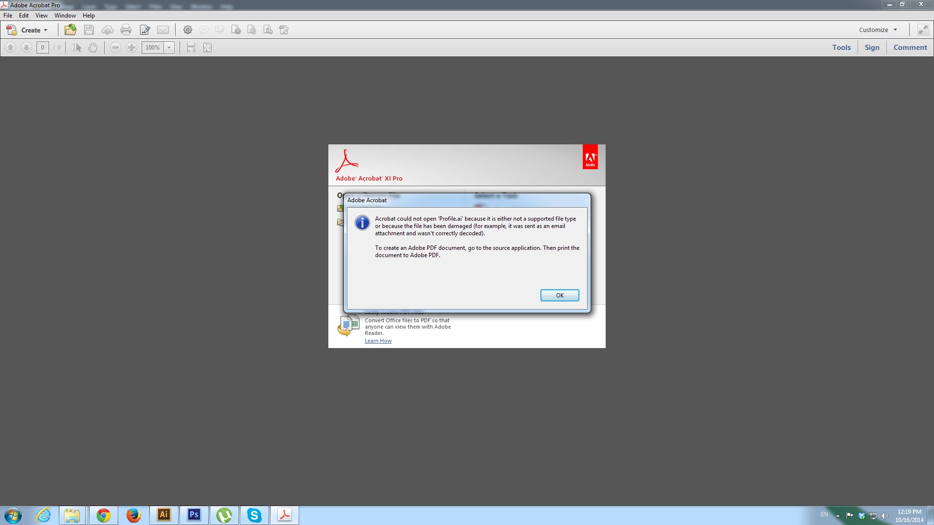 The file "Profile.ai" is in an unknown format and cannot be opened